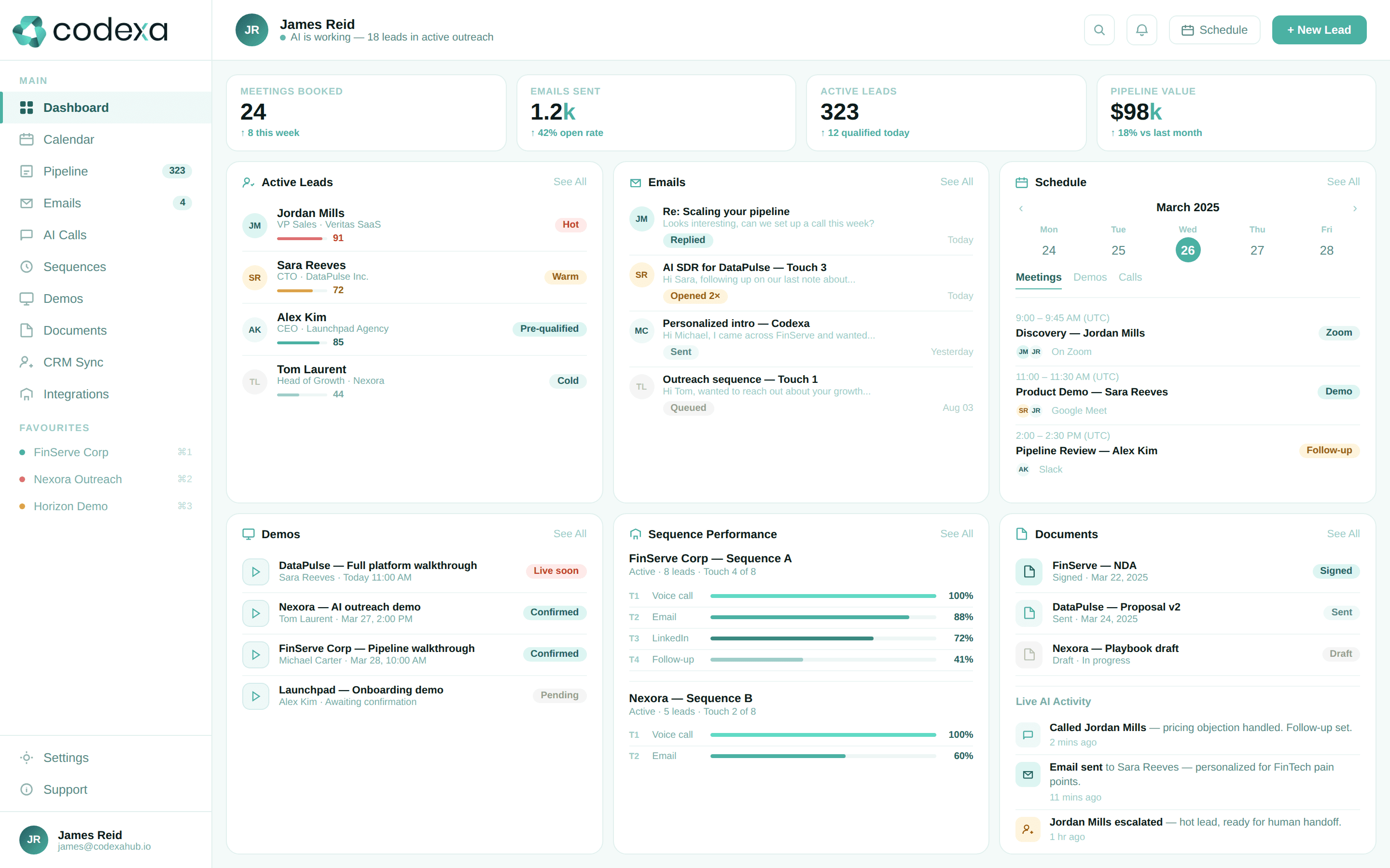 Codexa is a fully autonomous AI employee that runs your entire outbound — cold calls, emails, LinkedIn, & qualification demos — without being told what to do next. Qualified leads booked directly into your calendar.